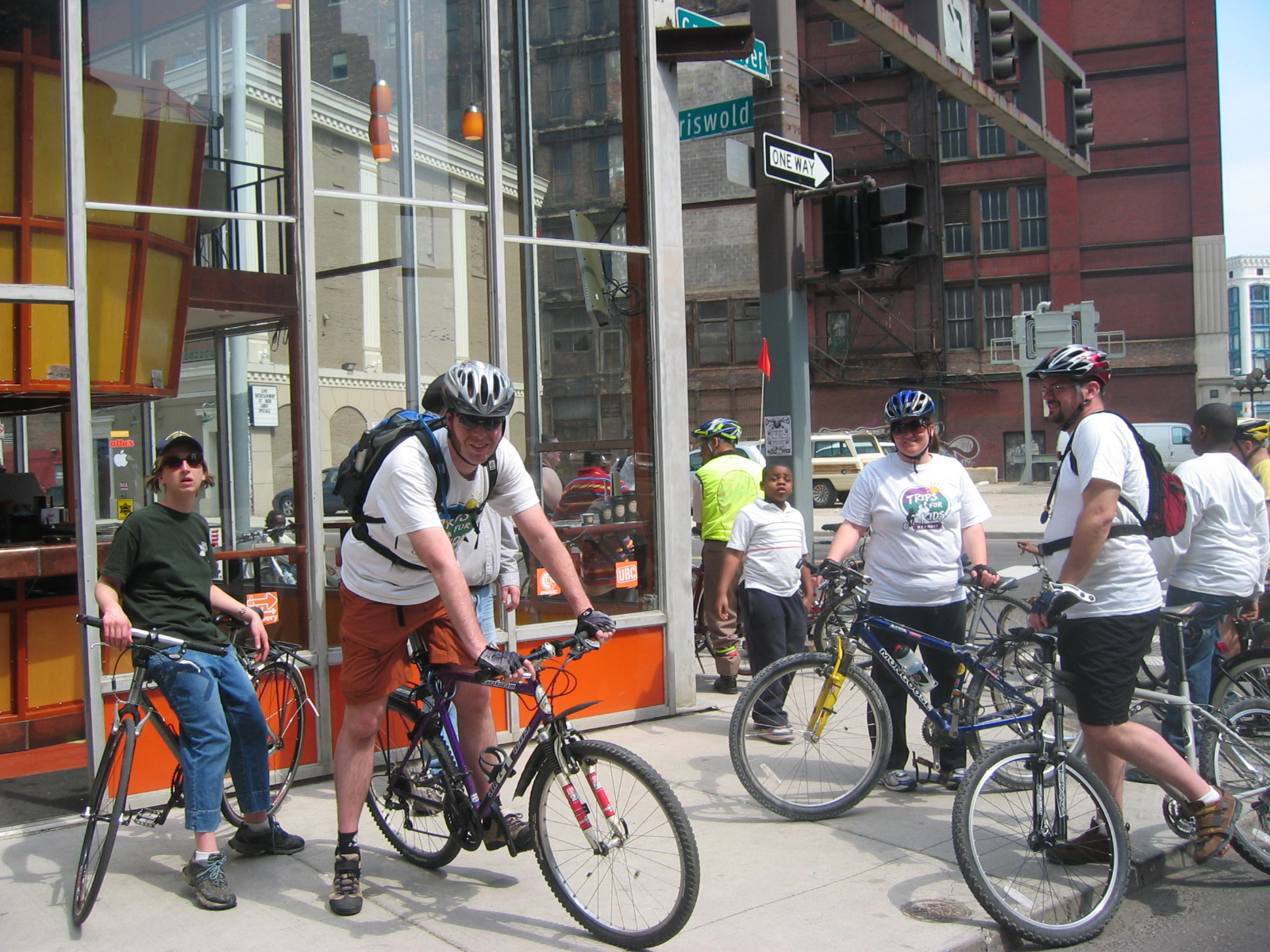 After that ride, I rode over to the Urban Bean Company for a cold drink. While there, a Back Alley Bikes/Trips for Kids Detroit ride showed up.