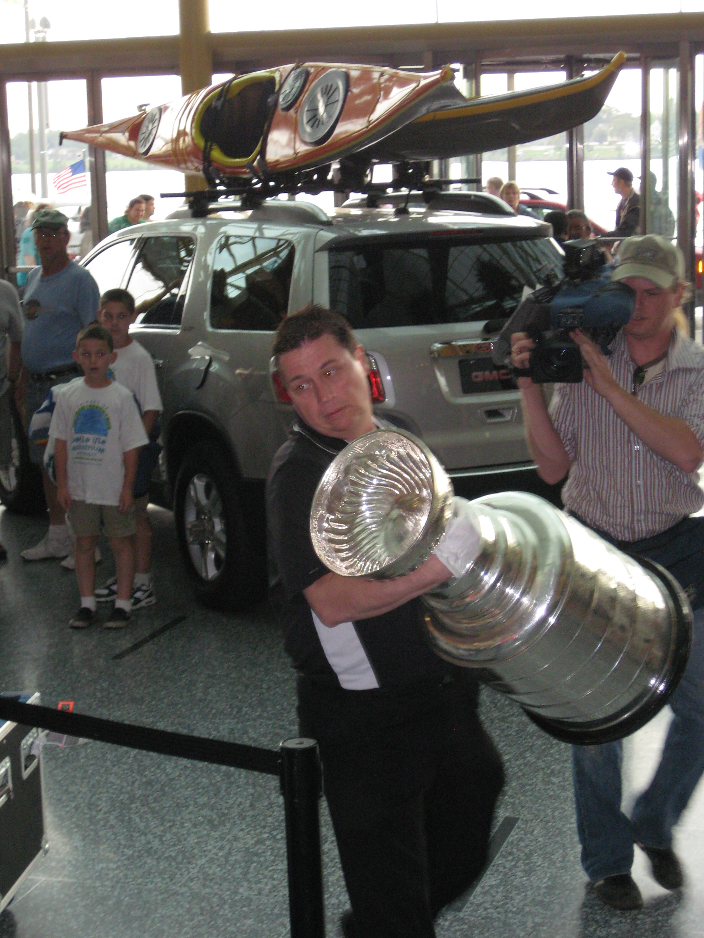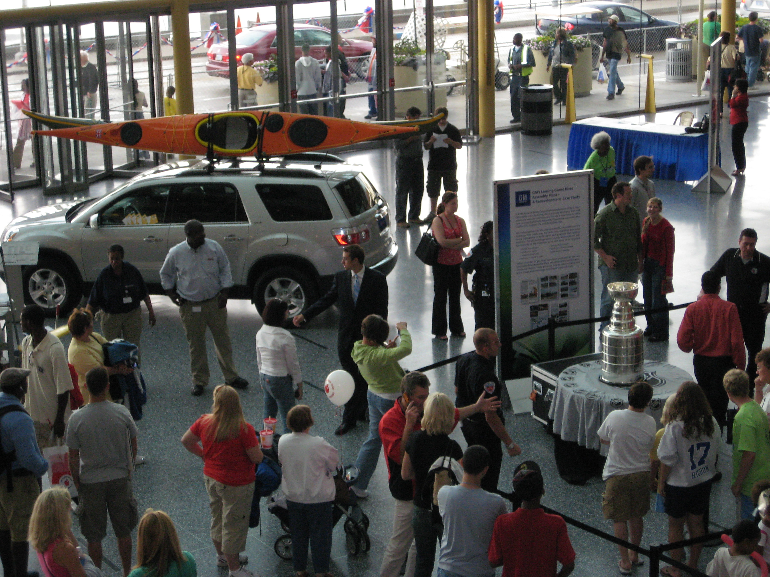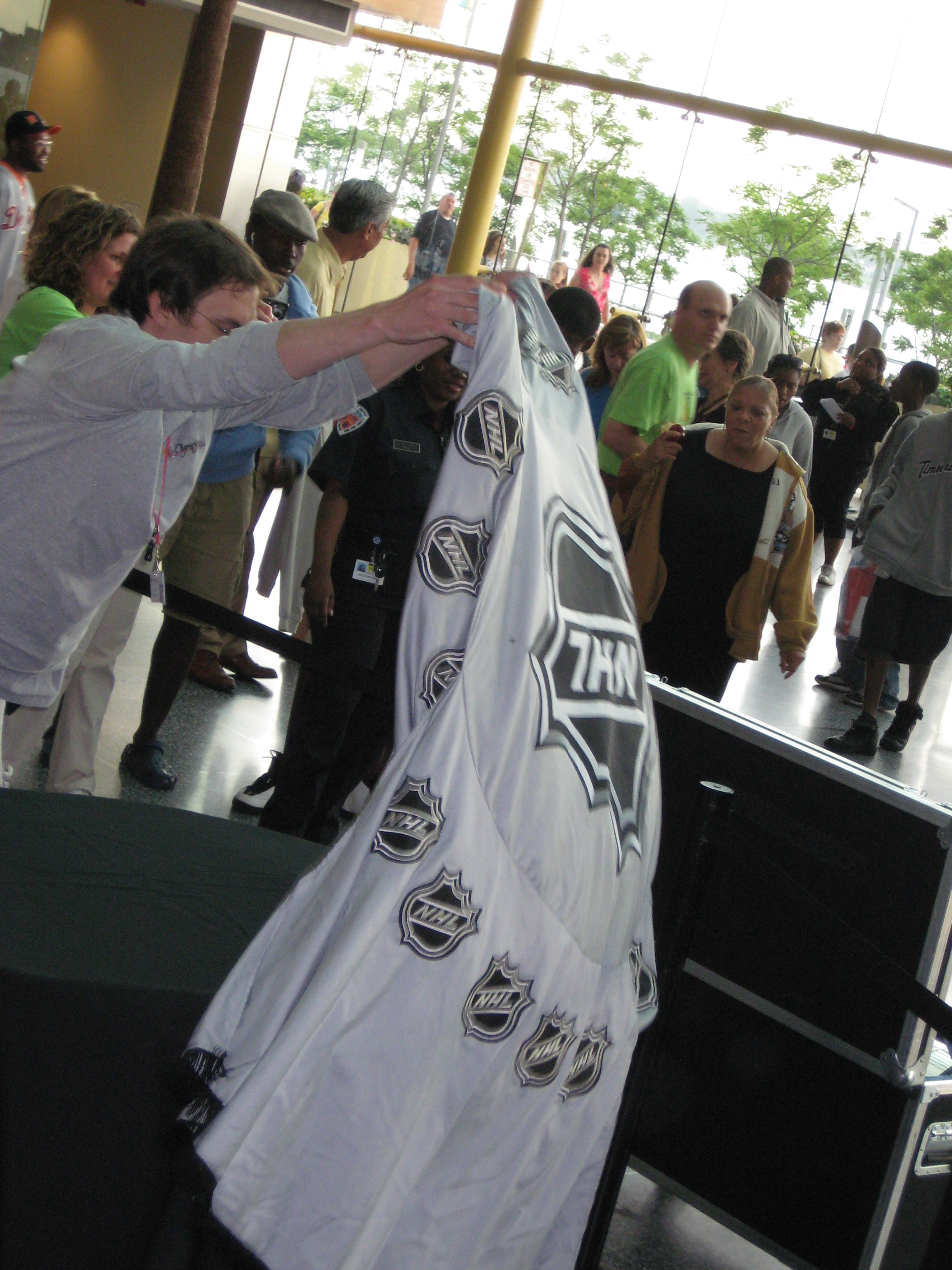 I was working at the Michigan Trails and Greenways booth at Detroit’s RenCen for Riverdays. The organizer came over on the last day and asked to pack up the booth early. The Stanley Cup was en route and they didn’t want us to get in its way. No problem. I packed everything up and jumped in line.
